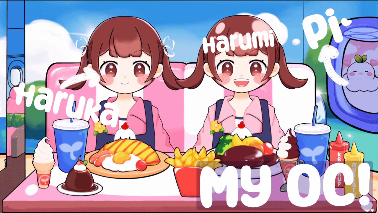 • Haruka and Harumi are both twin farmer girls working on a cozy farming game. Taking care of chickens, growing some corps, socializing with neighbors and having fun. Both of them are called Haru-chan which means Spring. Harumi is an extrovert and Haruka is the opposite, an introvert.