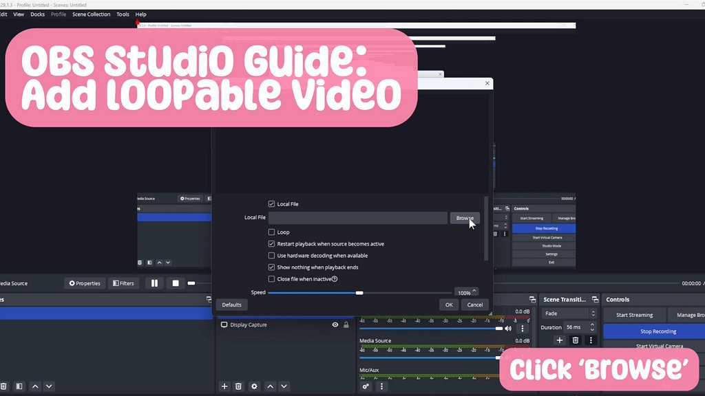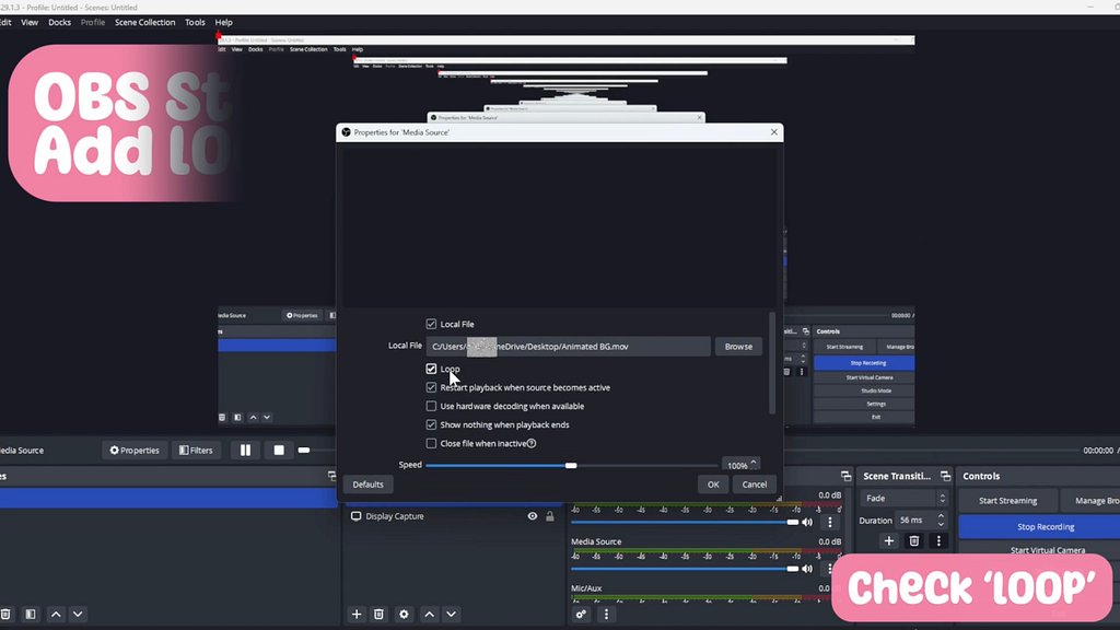Add loopable video file and static image in OBS Studio 🎬