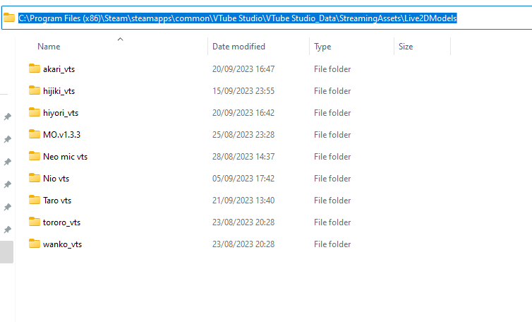 1. Copy and paste the '(your name) vts' (included in the .ZIP file that I sent to you) to C:\Program Files(x86)\Steam\steamapps\common\VTube Studio\VTube Studio_Data\StreamingAssets\Live2DModels